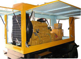 千阳柴油发电机组/移动柴油发电机组设计独具创新,机动性高、重心低、制动安全、制造精良、外形美观。 千阳拖车车架采用槽梁焊接成框架结构,节点选择合理、强度高、刚性好;同时装有钢板弹簧悬架结构;拖车采用高度可调节插销式牵引架,适用于各种高度牵引车;采用圆形钢管焊接直通式车轴,结构紧凑,安全可靠;车架四角设有机械式支撑装置,配备惯性行车制动、驻车制动和脱离应急制动,确保机组在各种状况下的安全;车架前端设有支撑轮,具备承受机组垂直载荷的功能的同时还具备导向功能;整车配备转向和刹车指示灯,同时装有尾灯标准插头